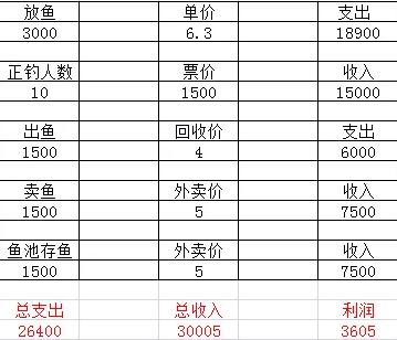 这个流水帐三天下来,明显对于鱼池来说是没利润的。