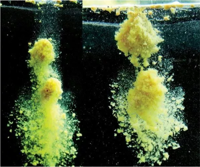 当我们使用普通饵料时,饵料到底等待鱼儿就食,中鱼的时间取决于鱼儿何时发现鱼饵,当我们打下大量的窝子或者抽竿频率很大的时候,水底布满了实体饵料,鱼儿何时发现钓饵,这是个很大的问题。但散炮则不同,它入水即化,化完之后形成微小的颗粒,这种颗粒是虚的,当我们上钩散泡,下钩搓饵的时候,鱼儿是非常容易发现搓饵的,这就是散炮中鱼率高的原因。
