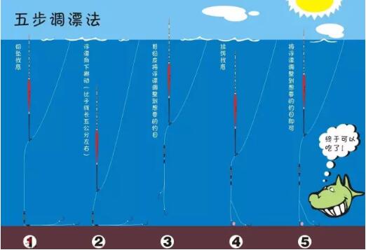 如果钓组入水后,漂躺在水面上,就向下移动浮漂。直到找到上面说的深浅。